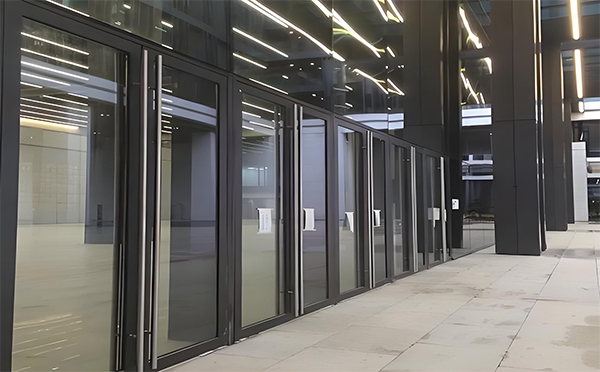 办公楼:写字楼大堂及内部办公室常使用玻璃地弹门,既能保证私密性又能增加空间感。
